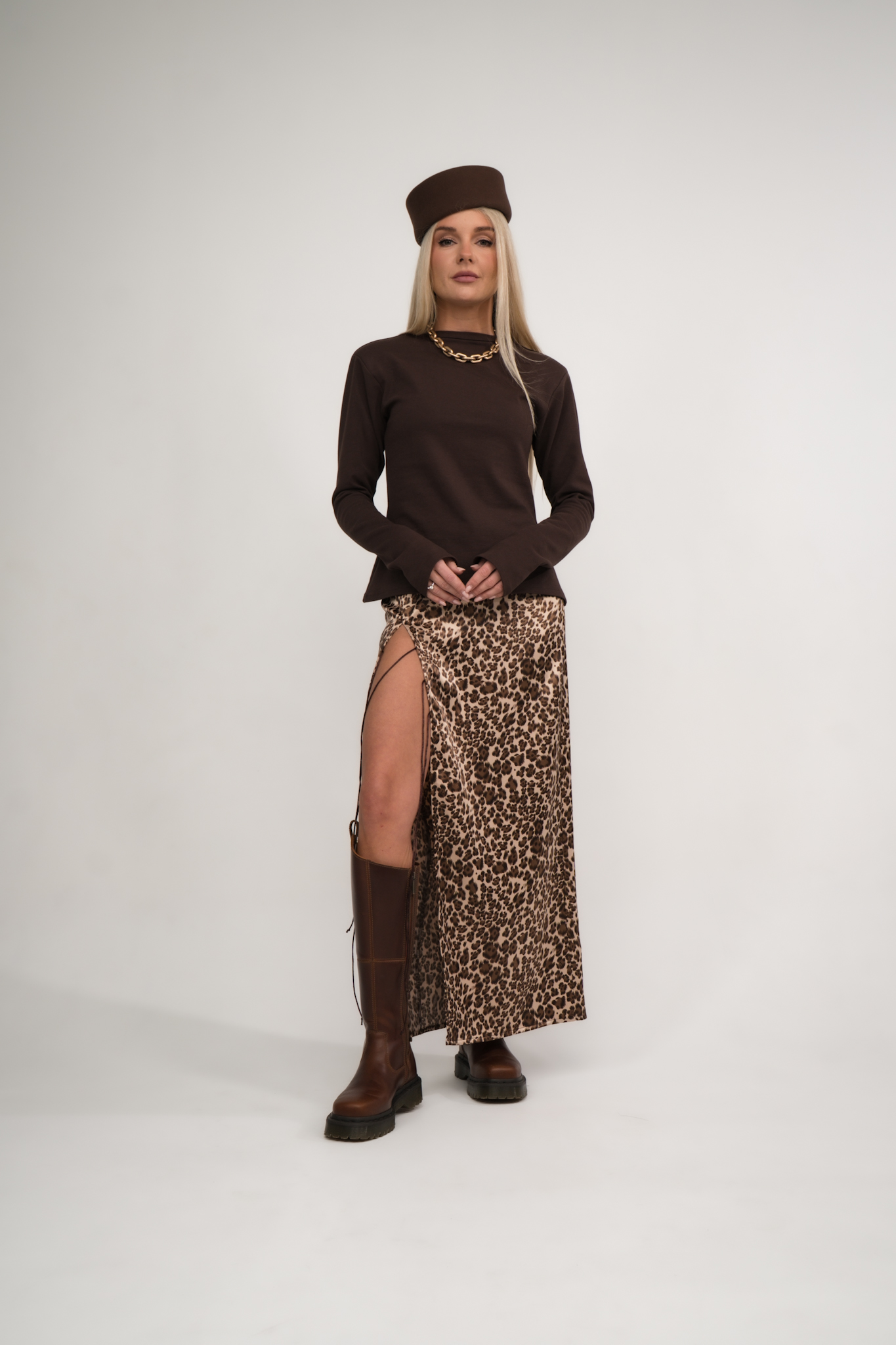 This blouse is crafted from soft cotton with a touch of elastane, gently embracing the body for a comfortable and flattering fit. Designed with structured shoulder pads — a key trend of the moment — it features a distinctive, modern silhouette. The carefully tailored waistline is subtly fitted and flows into a slightly flared hem, creating a beautifully balanced shape that visually enhances and slims the waist.